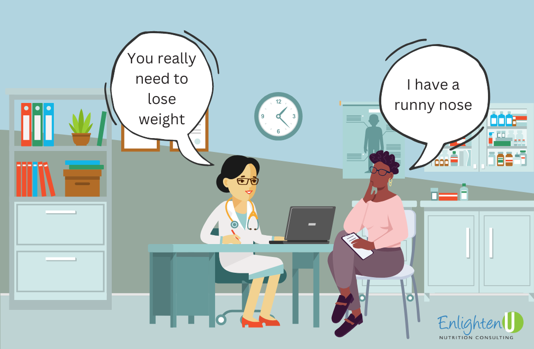 It would mean that your doctor would have to work harder to consider your overall health status, or problem you are seeking help for, versus assumptions based on BMI. With today’s technology, a more comprehensive approach to patient’s concerns, including lifestyle or other social determinants of health is not only possible, but it’s vital – but this means providers need to take time to ask you about these kind of things. On the flipside, when “you need to lose weight” (or “your weight is ‘normal’ thus there’s nothing to worry about”) becomes the answer to a potentially serious health concern, be mindful that this is not comprehensive care.